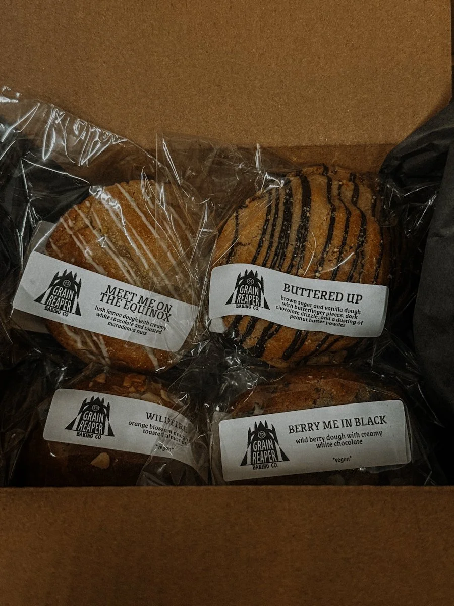 MEET ME ON THE EQUINOX - a perfectly toasted white chocolate and macadamia nut cookie with a vibrant burst of lemon. it’s bright and citrusy with a mellow undertone.