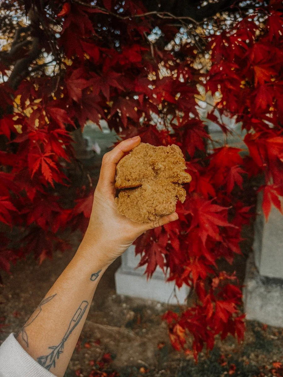 Ingredients: BLANCHED ALMOND FLOUR, BROWN SUGAR (SUGAR, MOLASSES), VEGAN BUTTER [COCONUT OIL, COCOA BUTTER,WATER, SAFFLOWER OIL, SUGAR, SUNFLOWER LECITHIN, NATURAL FLAVORS, SEA SALT, CAROTENE (FOR COLOR)], APPLE BUTTER [APPLES, SUGAR, SPICES (CINNAMON AND CLOVES)],GRANULATED SUGAR, DRIED APPLES, APPLE SAUCE, GLUTEN FREE AP FLOUR (WHITE RICE FLOUR, NON GMO CORN STARCH, BROWN RICE FLOUR, TAPIOCA STARCH, POTATO STARCH, XANTHAN GUM) VANILLA EXTRACT, BAKING SODA, BAKING POWDER, XANTHAN GUM, CREAM OF TARTAR, SALT, GROUND CINNAMON, GROUND NUTMEG, GROUND ALLSPICE, GROUND CLOVE, GROUND GINGER